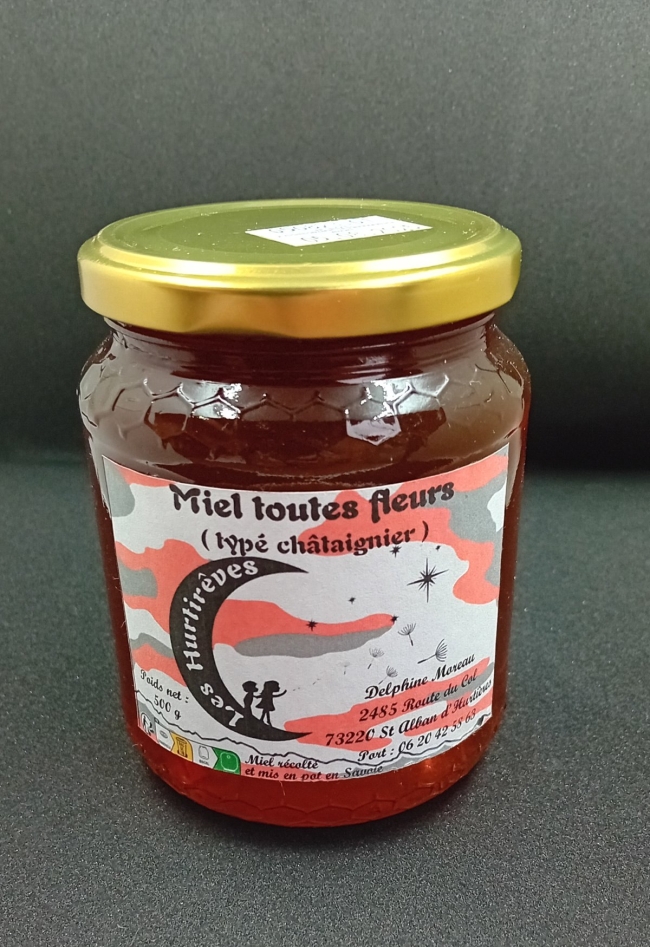 Miel issu de nos ruches. Les ruches ne sont pas transhumées, vous retrouvez donc dans ce miel un mélange de toutes les fleurs de la ferme.